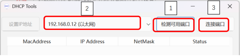 1、设定森特奈 ModbusTCP 协议 IO-LINK 主站模块的 IP 地址。 方法一:通过森特奈“DhcpTool”IP 地址分配软件进行设置: ①、首先可在森特奈官网获取“DhcpTool V1.2”软件并安装(仅支持 WIN10 及以上系统),打开软件