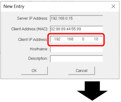 ②、双击扫描出的模块,输入要设置的 IP 地址(IP 地址与本机 IP 地址要在同一网段),点击“OK”,设置完毕后,模块 BUS 红灯将不再闪烁。可以将模块 IP 地址设置拨码拨到“0X00”,即“按照上次的 DHCP 分配的 IP 地址运行”,那么每次断电上电后,模块都将按之前分配的地址运行。另外拨码也可以拨到 0x01 - 0xFE,此时前 3 位网段,按照 DHCP 分配的运行, 第 4 位按照该拨码设置运行。