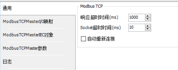 双击左侧导航树中 Modbus TCP Master,右侧主菜单点击“通用”,设置 Master 参数。