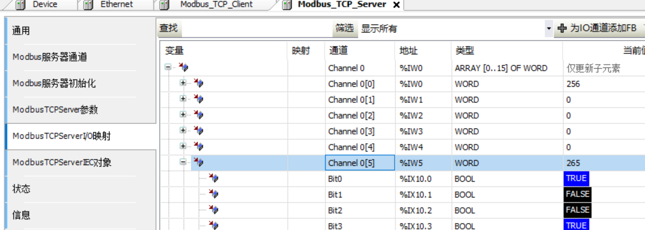 点击 Modbus TCP ServerI/O 映射,选择右下角: