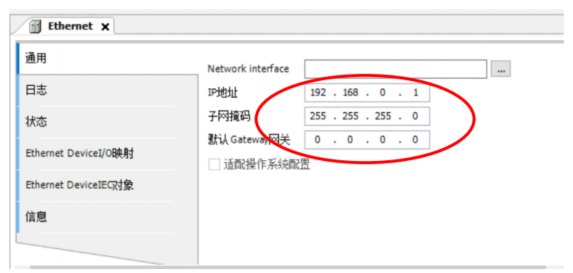 双击 Ethernet(Ethernet),设置 IP 地址、子网掩码、网关。