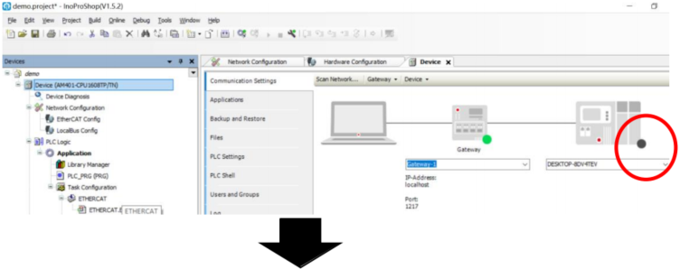 注:如果扫描不到网络路径,应该先确认PLC和电脑是否处在同一网段,然后检查一下菜单右下角的网关和控制器是否启动,请确保网关和控制器处于启动状态(启动后为红色,未启动为灰色)