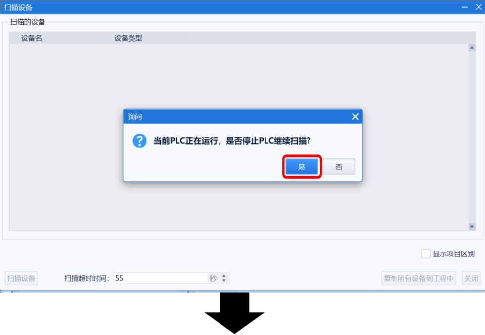 扫描出的模块连接应与实际连接一致,点击右下角“复制所有设备到工程中”。
