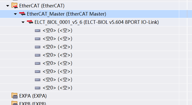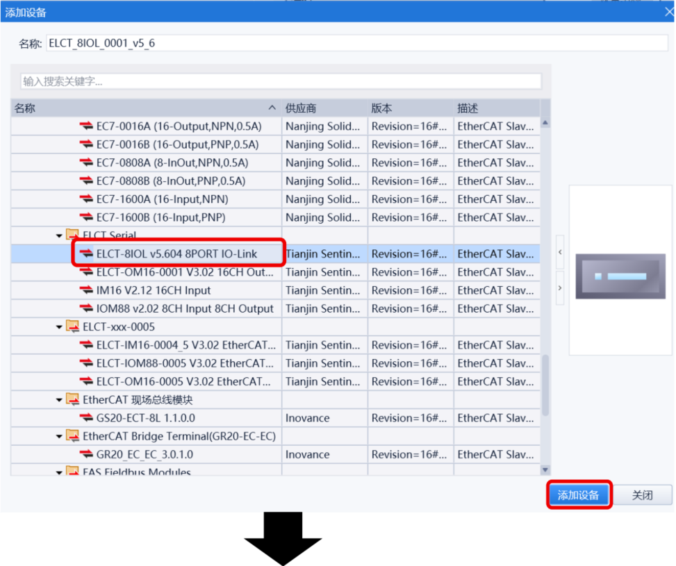 Ethercat Master右键 → “添加设备”,在对话框中选中ELCT-8IOL...→ “添加设备”。