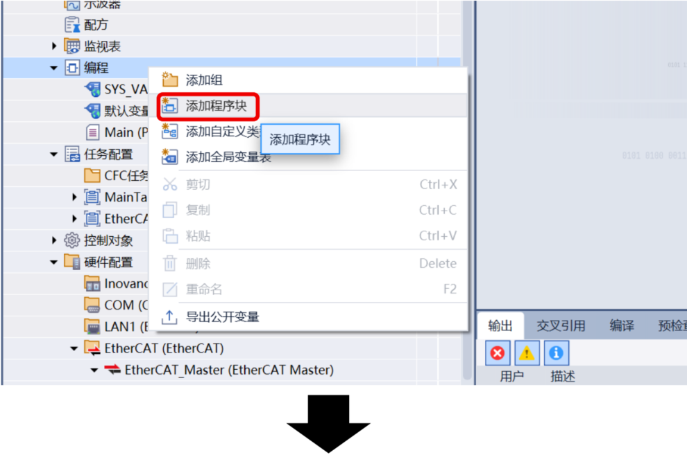 如需进行梯形图编程:右键“编程”项目 → “添加程序块”,在对话框中: