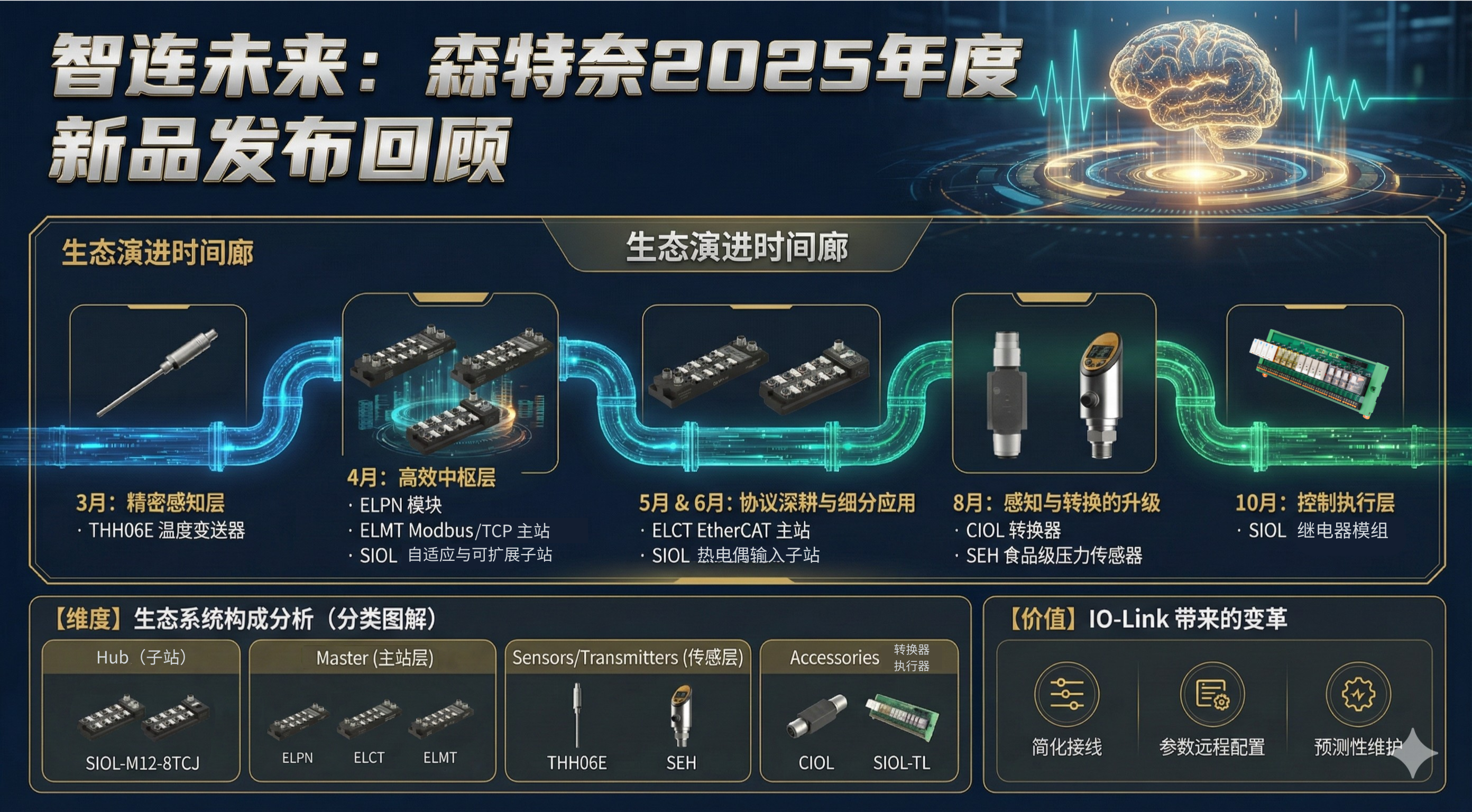 2025 年已经走完全程。这一年里,我们围绕 IO-Link 系统生态持续发力,从温度测量、I/O 接入,到主站连接、信号转换,再到末端执行,陆续推出了多个产品系列。